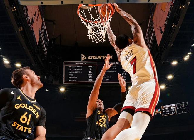 NBA常规赛,勇士坐镇主场迎击热火。本场比赛之前,勇士24胜19负排名西部第8,热火22胜20负排名东部第8,两队都处于季后赛边缘排位。对于勇士来说,他们的核心能力还是足够的,巴特勒+库里,两人都还在巅峰期,巴特勒本赛季效率很高,而库里更是兼具效率和产量,场均砍下28分,并且还刚入选了全明星首发阵容,成为唯一一个进入全明星首发阵容的传统超级球星。另一边热火队,实力也不容小觑,鲍威尔加盟后焕发新生,原本的希罗,阿德巴约,威金斯,也都入选过全明星阵容。上一场比赛,热火刚击败了联盟第一的雷霆队。