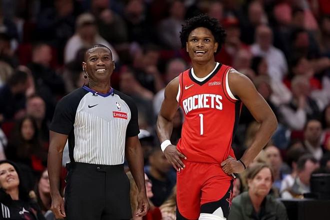 本场比赛中,火箭的先发控卫阿门-汤普森(Amen Thompson)的表现依然是令人喜忧参半。阿门全场出场39分13秒,投篮14中6,三分线外2中0,罚球5中4,得到了16分10篮板6助攻1抢断2盖帽的数据,还有3次失误,正负值为+7。阿门在进攻端虽然依然没有办法找到外线投篮方面的手感,但是他在中距离投篮方面的表现倒是有些出人意料的,他在这方面确实是是起到了一定的作用。不仅如此,阿门在防守端的表现也是可圈可点的,给对手的后场新星斯蒂芬-卡斯尔(Stephen Castle)制造了不小的威胁。当然了,作为一名控卫,阿门在传球和组织方面的表现还是比较一般的,他也需要进一步优化一下自己的进攻选择以提升自己的进攻效率和成功率。