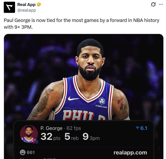 乔治9记三分+大帝梦回巅峰!探花与魔仙齐暴走 76人超上季总胜场