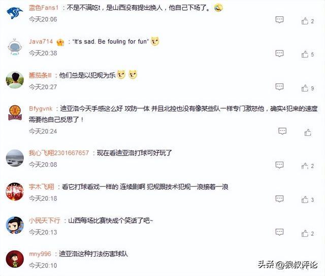全场比赛的对抗尺度并不是很大的情况下,迪亚洛一些犯规动作控制,仿佛是求战欲望不高,除了争议的山西男篮尚未启动换人,他自己下场吃到技术犯规,第四节更是只打了31秒,火线领到自身的第五次犯规,累计犯满离场。