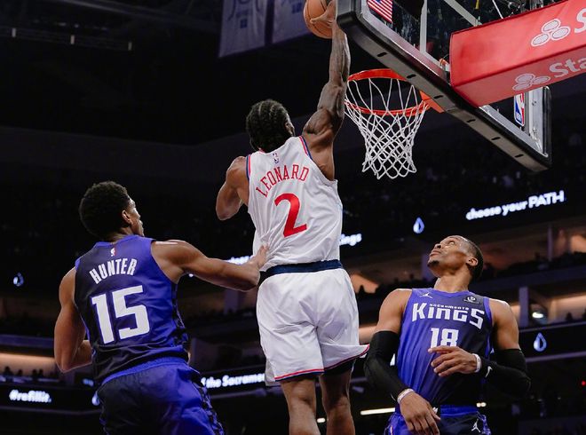 一切因素显示,看来快船又要掉下去了,但最近两场比赛,伦纳德带队分别击败了国王和森林狼,打国王一战没什么好说的,伦纳德31分,国王第四节主动放弃,用替补打完全场;但和森林狼一战,小卡轰下41分8篮板4抢断,最终快船19分大胜完整体森林狼,距离西部第八的勇士只差2.5个胜场。有一幕让人印象深刻,比赛打到第四节还剩9分钟,森林狼全队得分是67分,小卡个人得分是40分,镜头给到爱德华兹,他注视着小卡的方向,陷入沉思。换来的几个新援,加兰+马瑟琳都打不了,这算是小卡单核了吧!