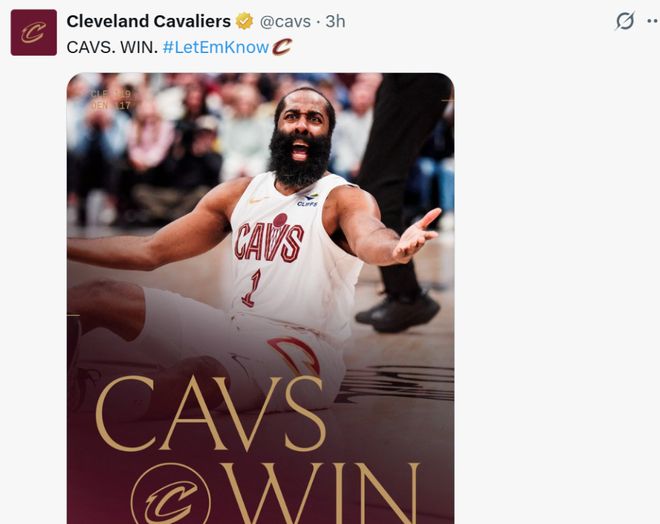 骑士近10战拿下9场胜利,哈登复刻昔日审判之投!加盟第二战轰22+10+7+3帽成队史首人,两战连续爆发强势打破质疑的同时光速激活骑士双核。