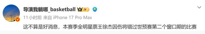在2月1日常规赛广东与宁波的比赛中,徐杰在第二节左脚意外扭伤,提前离场,当时就被队医搀扶一瘸一拐走回替补席。事到如今,徐杰的恢复情况依然不佳,那就只能无缘本届国家队了。他也是从目前的消息源来看,第一位告别本届国家队的球员。
