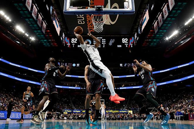 本场比赛中,马刺的先发后场新星斯蒂芬-卡斯尔(Stephon Castle)的表现算得上是令人刮目相看。卡斯尔全场出场30分07秒,投篮16中7,三分线外1中1,罚球3中1,得到了16分4篮板11助攻1抢断1盖帽的数据,还有4次失误和2次犯规,正负值为+5。卡斯尔在进攻端的表现还算是比较可靠的,他也是通过各种方式拿下了不少分数,而且他在传球和组织方面的表现也是可圈可点的。卡斯尔在防守端也是保持了自己应有的水准,展现出了自己超强的个人防守能力,给对手制造了不小的麻烦。最关键的是,在后场搭档达隆-福克斯(De'Aaron Fox)表现堪称灾难的情况下,卡斯尔算是扛起了球队的后场大旗,发挥出了自己各方面的水准,他也为球队的胜利做出了巨大的贡献。