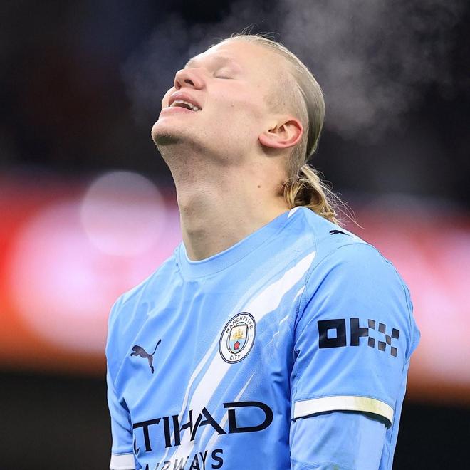 此役客场对阵曼联,首发出战的哈兰德在比赛第80分钟被换下,仅完成2次射门,无一射正,只有14次触球。