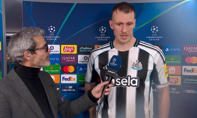 欧冠联赛阶段第8轮,纽卡客场1-1战平巴黎,纽卡后卫丹-伯恩赛后接受了CANAL+的采访。