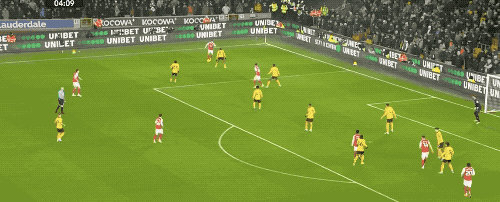 比赛刚开场5分钟,枪手就打出梦幻开局。赖斯左侧送出精准传中,萨卡后点高高跃起头槌破门,阿林纳1-0领先;萨卡终于终结了长达15场比赛的进球荒。进球之后,阿森纳牢牢掌控节奏,控球、压迫、射门,几乎压得狼队喘不过气。